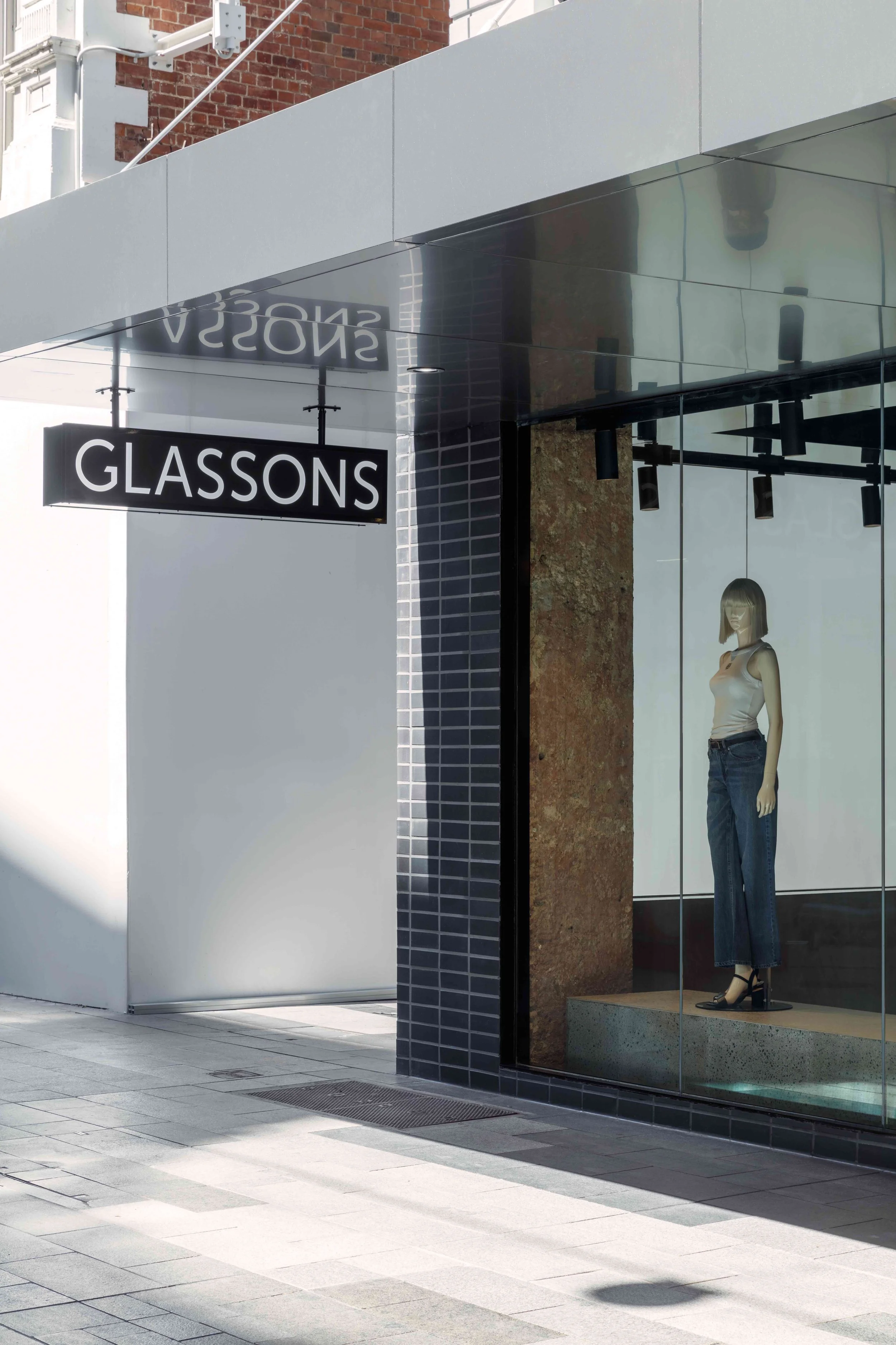 PERRY was engaged to design the second Glassons store for South Australia. The historic Rundle Mall site underwent a huge restoration programme to gain a levelled retail floor throughout. Recognising and responding to both the context and potential customer of this site, we wanted to maintain as much of the heritage base building as possible, preserving its presence along the well known Rundle Mall pedestrian strip. Raw concrete, cement panelled walls and custom, gritty terrazzo tiles contrast with mirror and stainless steel merchandise displays.