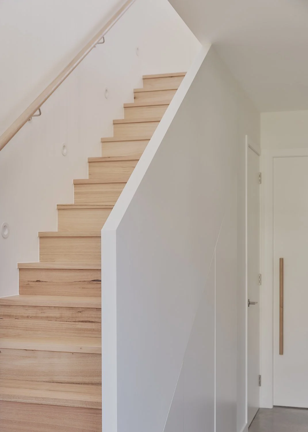 A minimal steel balustrade was designed to not only allow light into the stair void but maximise space within the compact kitchen and living spaces.
