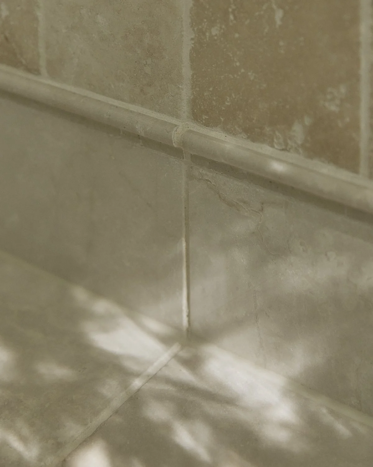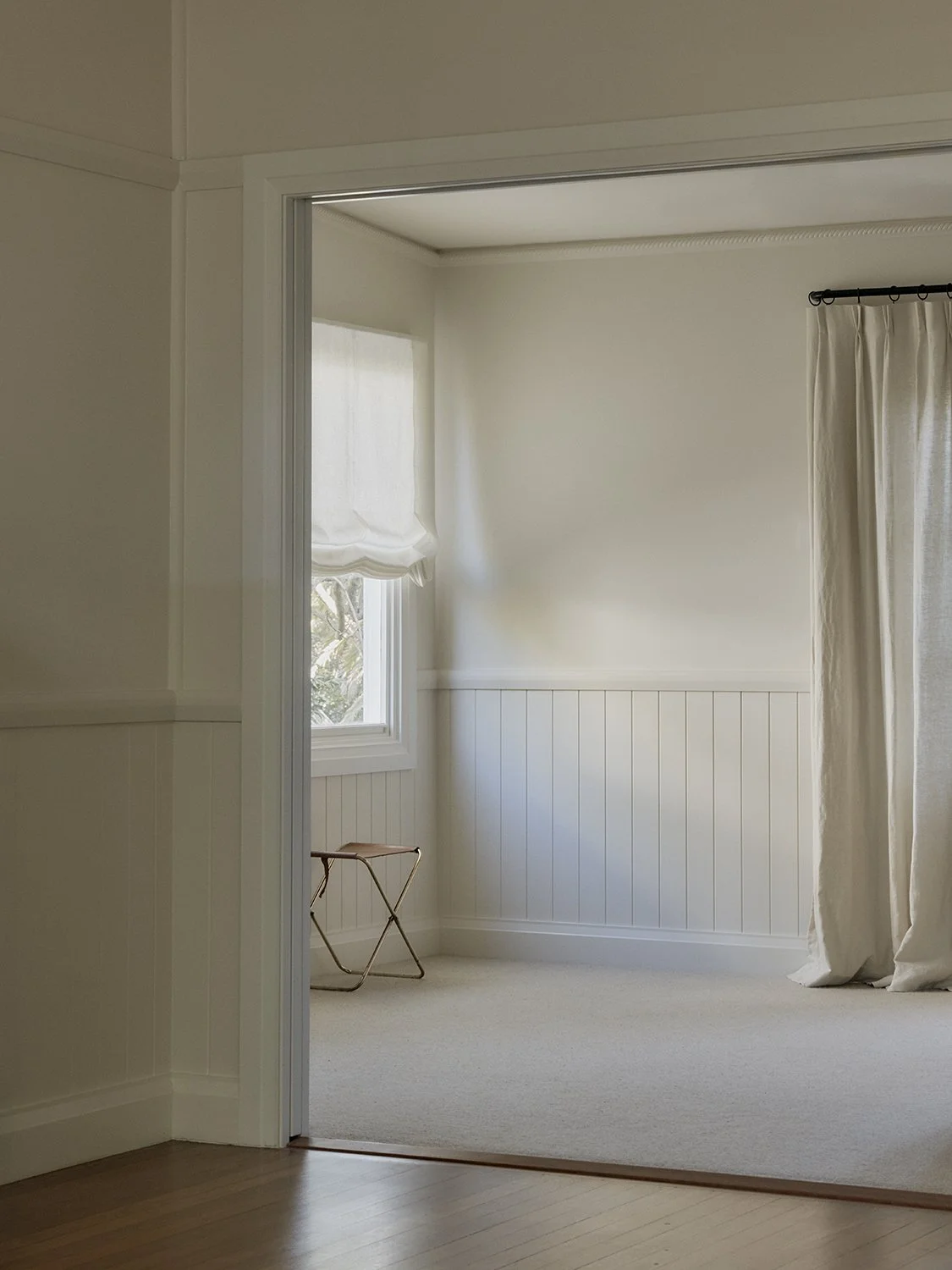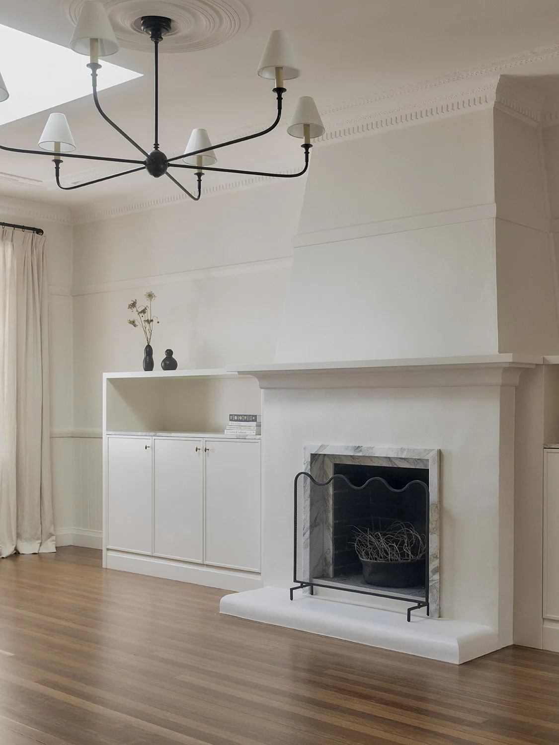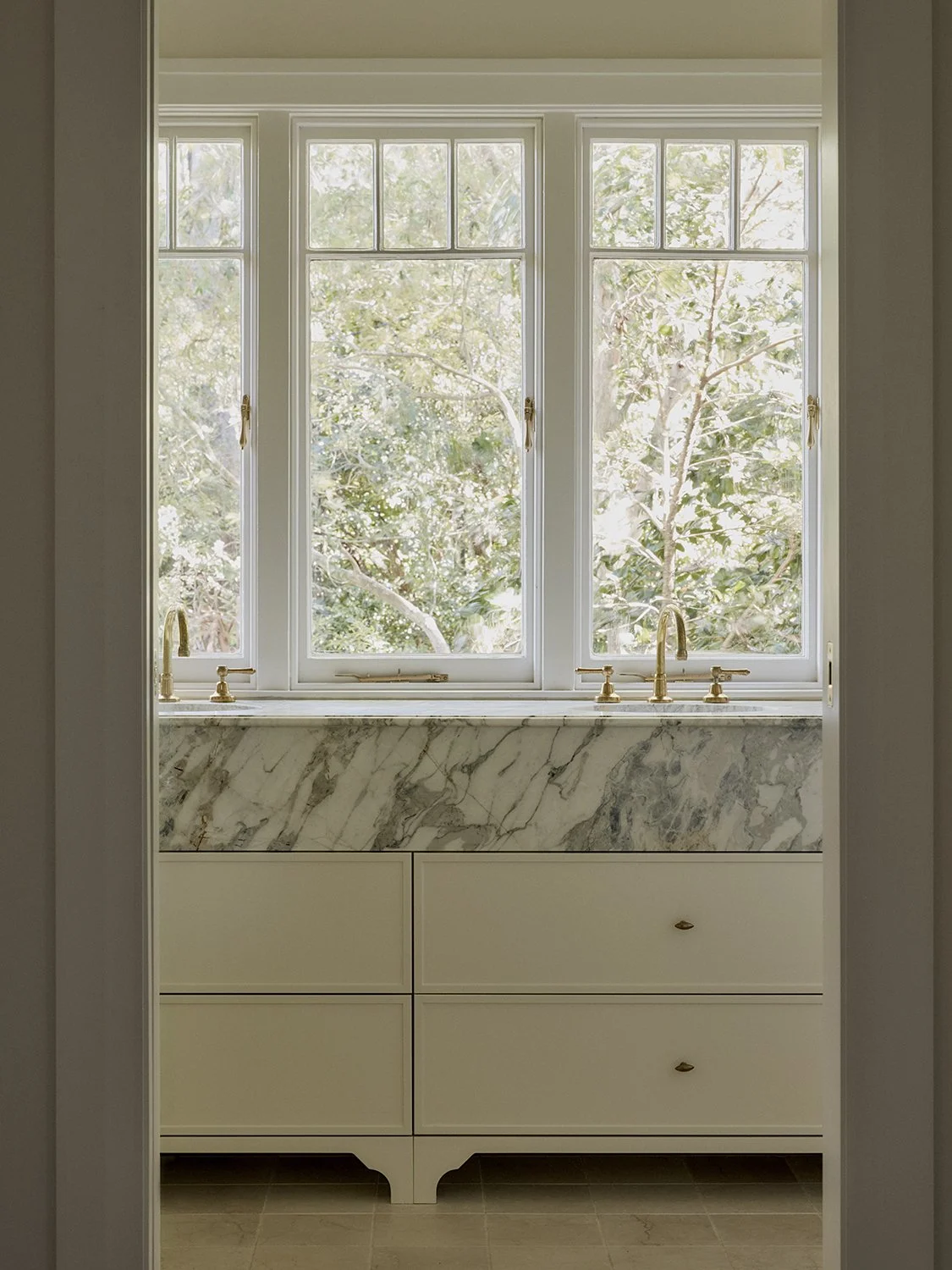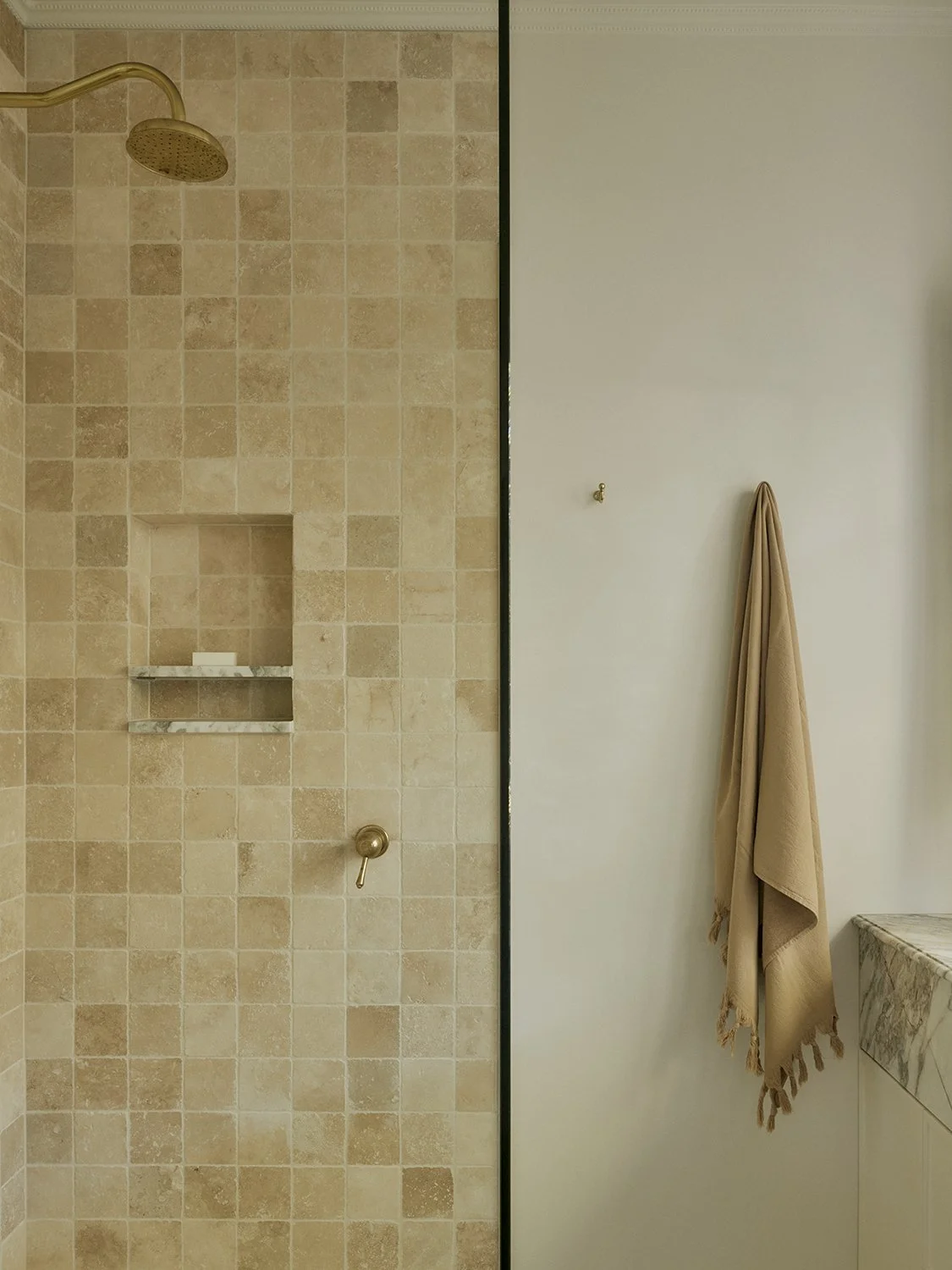 Much thoughtful detailing was given to the base building to preserve the existing period details. A soft minimal palette has given character and warmth by using natural materials: limestone tiles, grey iron bark timber flooring, travertine, Botticino marble and solid brass fittings and door hardware.